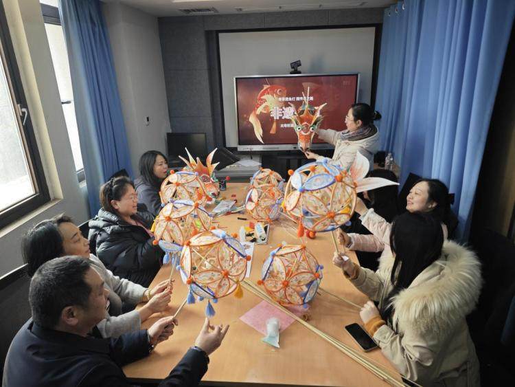 活动中,工作人员为大家系统讲解了绣球灯与鳌鱼灯的历史渊源与文化寓意。绣球灯起源于宋代,以竹为骨、以纸为面,球体层叠圆润,寓意团圆美满;鳌鱼灯则源于明清科举文化,鱼身龙首、昂首挺立,象征“独占鳌头”、奋发向上。通过实物展示和影像资料,职工们不仅了解了花灯在不同地域、节俗中的演变,也对即将开始的动手实践充满期待。
